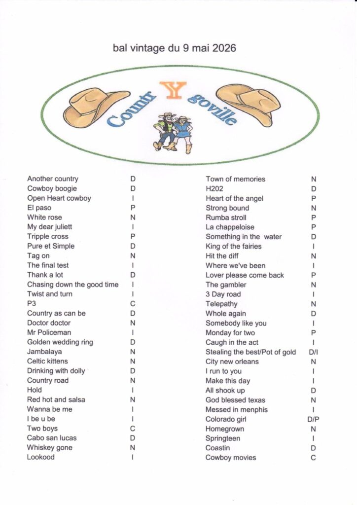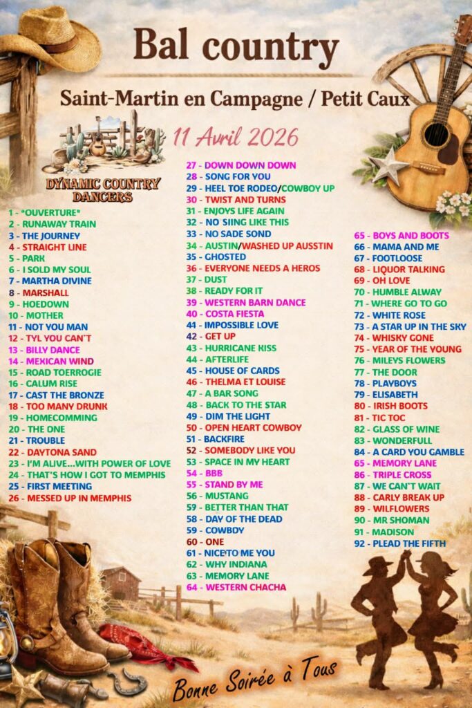 Bal Just Country Dancers – Samedi 11 Avril 2026 – Neuville les Dieppe (76) 15 février 2019 / Vincent JULIEN 20260411 Playlist Neuville les Dieppe